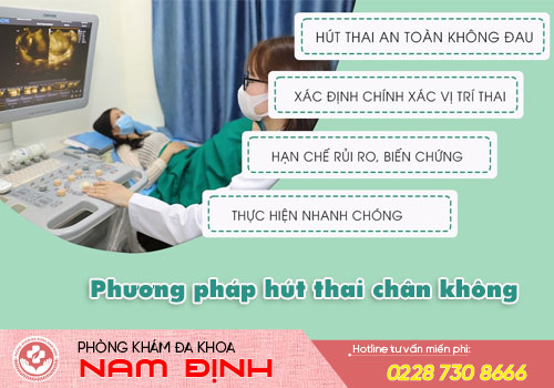 Các bác sĩ Phòng Khám Đa Khoa Nam Định cho biết, để phá thai 2 tháng đạt hiệu quả, thai phụ sẽ được chỉ định áp dụng phương pháp ngoại khoa như hút thai chân không để tiến hành bỏ thai.